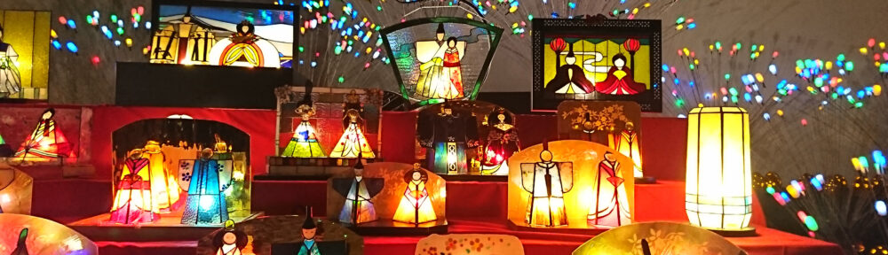 今年もステンドグラスの幻想的で温かな光に包まれるおひな祭り展が開催されます。